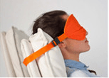 Here’s how it works: Once you get to your seat on a plane, bus or train, you tie the Sleeper to the back of your seat, tighten to your head size then you pull the mask over your eyes. You can adjust the straps to keep your head in place.