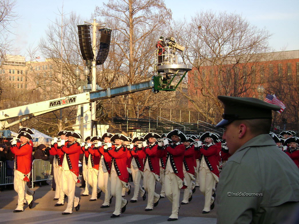 In the excitement of the day, we decided we wanted to attend the parade but didn’t have tickets. We hadn’t planned that far ahead. We got lucky. We met someone whose party didn’t show and she had extra tickets which she willingly gave them to us. We found seats on bleachers near the White House and waited for the president, vice president and their wives to arrive.