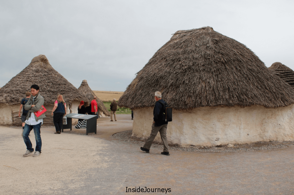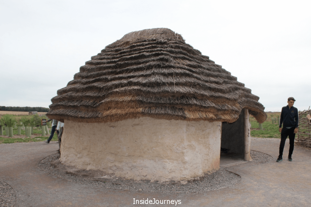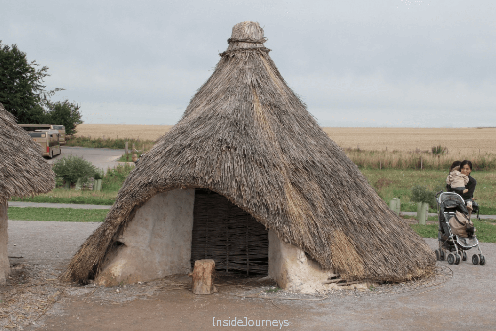 A recreated Neolithic village of thatched cottages occupies a prominent space just outside the Visitor Center. Appropriately, there’s a gigantic sarsen stone that visitors are invited to try to pull. Even though the stone sits atop logs – experts’ best theory of how the builders of Stonehenge moved those massive stones – it was still difficult to move it.