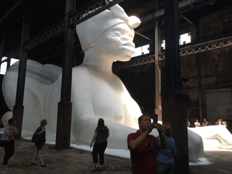 Called A Subtlety or the Marvelous Sugar Baby – an Homage to the Unpaid and overworked Artisans who have refined our Sweet tastes from the cane fields to the Kitchens of the New World on the Occasion of the demolition of the Domino Sugar Refining Plant, it left me a bit confused.