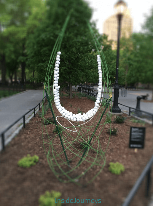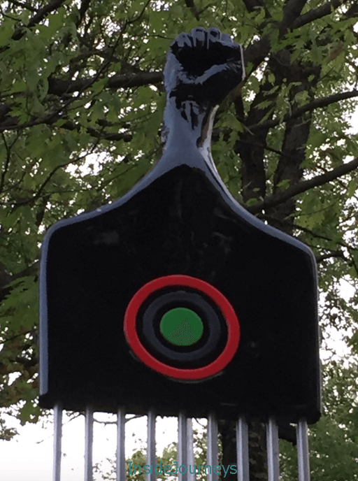 Flux Art Fair features work by over 40 artists. Most will be on display at Marcus Garvey Park until May 31st. According to their plaques, Big Head (Harlem Rose), Surge, Sculpture Love, Outdoor Indoor, The Odyssey and (E)scape – New Faces will remain until August 1, 2016. The exhibition is free, however there are several paid events around Harlem, including talks on May 21 and 22 and a family brunch.