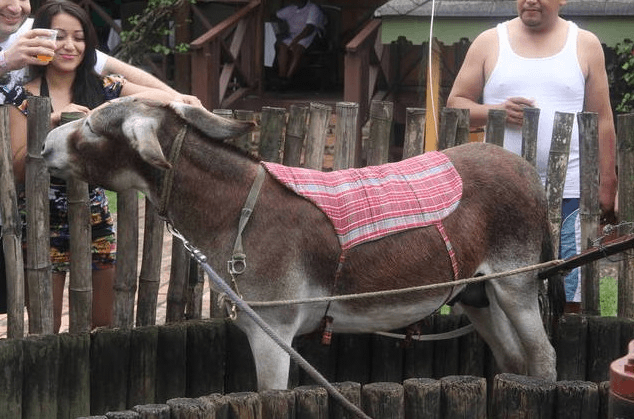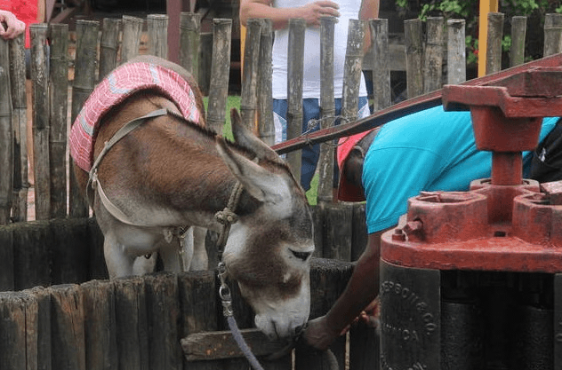 Donkeys are everywhere in the countryside. Farmers use them take them to their farms and produce to the market. In the old days, the donkey operated the machine that squeezed the juice from sugarcane. The donkey in these photos from Appleton demonstrates how it was done then waits to be fed and petted.